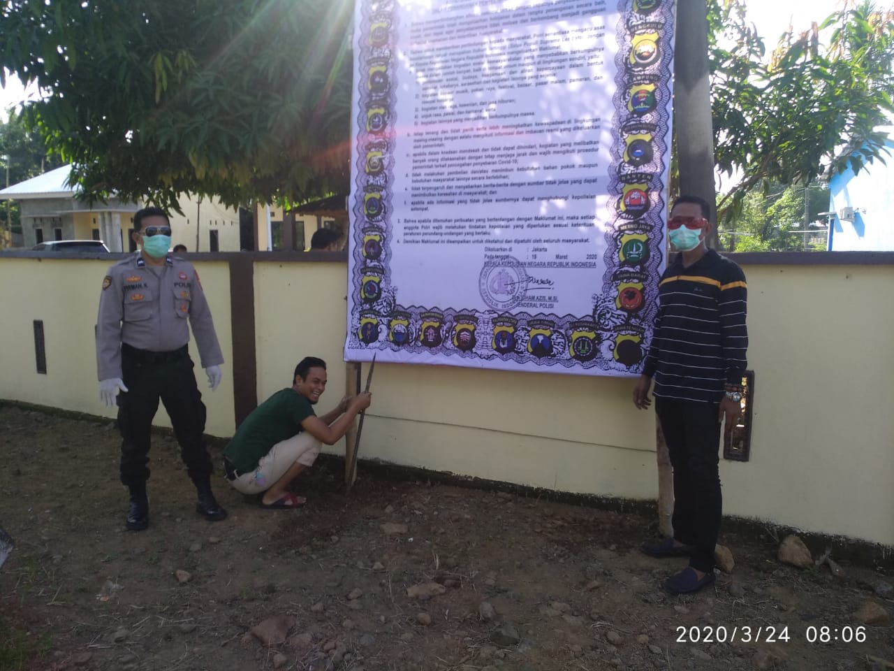 Menindak lanjuti perintah Kapolri melalui instruksi Kapolres Takalar, Kapolsek Polsel bersama personelnya melakukan kegiatan pemasangan spanduk Maklumat Kapolri di depan Mako Polsek Polsel, Selasa (24/03/2020).