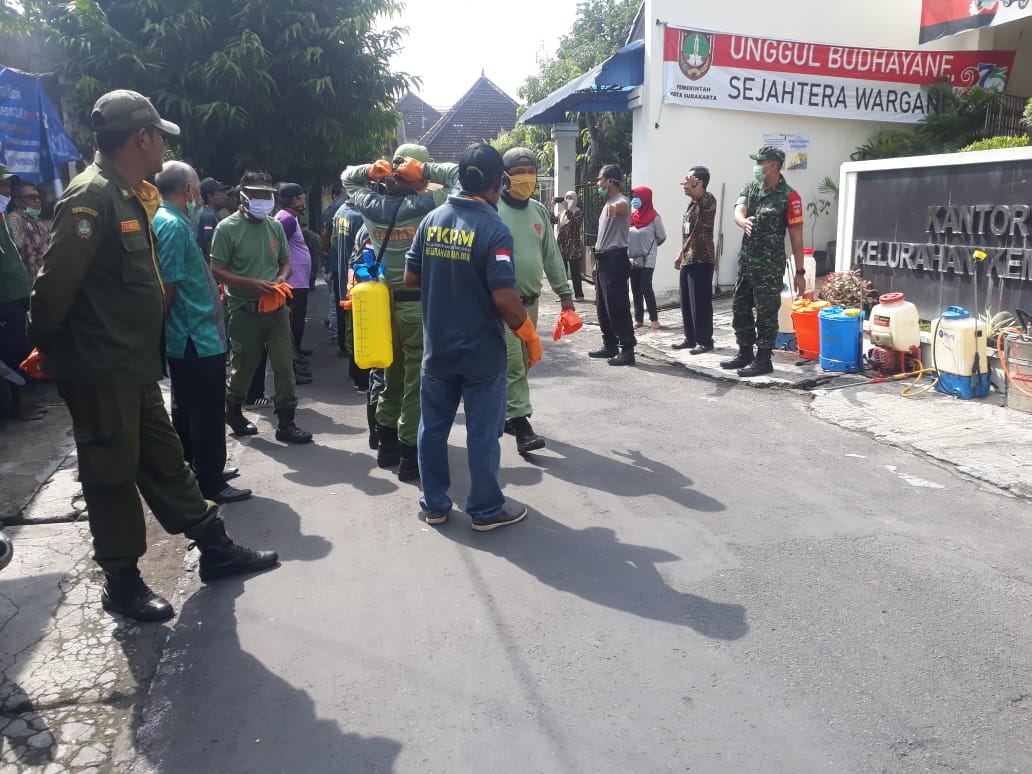 "Kami Babinsa, Bhabinkamtibmas dan aparatur pemerintahan kelurahan Kemlayan serta seluruh Warga Kemlayan bersinergi bersama melaksanakan penyemprotan serentak cairan desinfektan di rumah-rumah warga dengan tujuan untuk meminimalisir merebahnya Virus Covid-19, dan memutus mata rantai Virus tersebut.