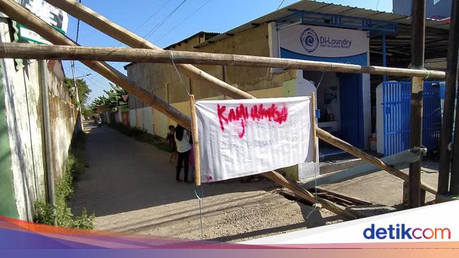 Aksi penolakan rapid tes dilakukan warga Jalan Daeng Tata V, Kelurahan Parang Tambung, Kecamatan Tamalate. Warga menutup gang dengan bambu dan spanduk penolakan di atas gapura jalan.