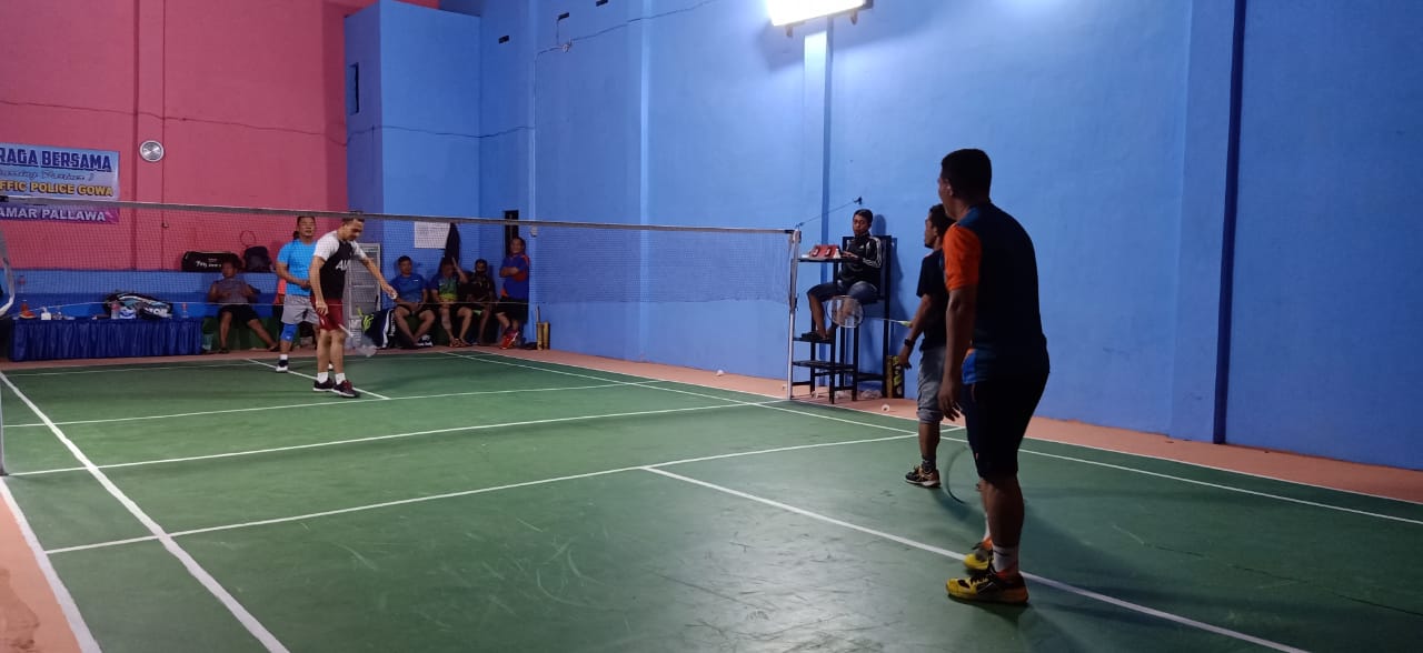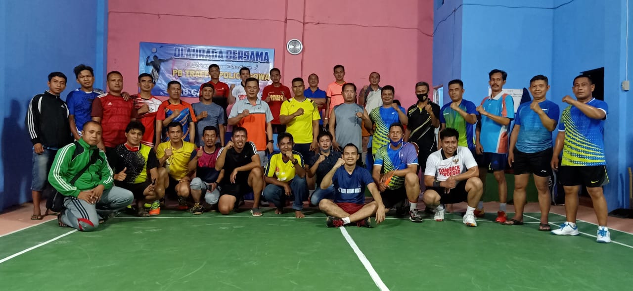 SULSELBERITA.COM. Gowa, -- Dalam masa adaptasi kebiasaan baru (AKB) Sabtu malam 25/07/202, Satuan Lalu Lintas (Sat Lantas) Polres Gowa gelar Olahraga bersama Sparring Partner Bulutangkis, di GOR Kalegowa Kelurahan Manggalli, Kecamatan Pallangga, Kabupaten Gowa, Sulawesi Selatan (Sulsel).